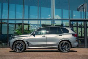 Es ist physikalisch eigentlich unmöglich, dass ein 2,5-Tonnen-SUV so fährt. Der X5 lenkt ein wie ein Kombi. Er ist präzise, verbindlich und neutral. Wo ein Audi Q7 eher untersteuert (über die Vorderräder schiebt) und ein Mercedes GLE sanft schaukelt, krallt sich der X5 in den Asphalt. Wir empfehlen dringend das Luftfahrwerk (Serie beim 50e). Es bietet die perfekte Spreizung. Im „Comfort“-Modus schwebt er über Frostaufbrüche. Im „Sport“-Modus senkt er sich ab, strafft die Dämpfer und lässt sich fast schon sportlich bewegen. Dank der optionalen Hinterachslenkung (Integral-Aktivlenkung) fühlt er sich in der Stadt handlicher an, als er ist. Der Wendekreis schrumpft spürbar. Er ist das „Fahrer-SUV“. Man fühlt sich immer als Herr der Lage, nie als Passagier in einem Schiff.