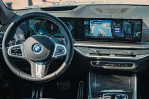 Steigen Sie ein, und Sie verstehen, warum der X5 so teuer ist. Die Verarbeitung ist auf einem Niveau, das selbst Audi ins Schwitzen bringt. Nichts knarzt, alles fühlt sich massiv an. Die Türen fallen mit einem satten „Thump“ ins Schloss, das Sicherheit suggeriert. Das Armaturenbrett wird vom Curved Display dominiert. Ja, wir trauern den alten Klimatasten nach, aber das BMW Operating System (jetzt in Version 9) ist mittlerweile so ausgereift und schnell, dass die Sprachsteuerung („Hey BMW“) fast alle Wünsche erfüllt. Ein riesiger Pluspunkt: Der iDrive-Controller auf der Mittelkonsole ist noch da. Sie müssen nicht während der Fahrt auf dem Touchscreen herumstochern, sondern können blind drehen und drücken. Das ist echte Fahrsicherheit. Die Sitze sind – besonders als optionale Komfortsitze – das Beste, was der Markt hergibt. Man steigt nach 1.000 Kilometern aus und fühlt sich frischer als beim Einsteigen. Das Platzangebot ist vorne und im Fond großzügig, wobei ein Mercedes GLE hinten gefühlt noch ein paar Zentimeter mehr Kniefreiheit bietet. Der Kofferraum ist, trotz der Batterien beim Hybrid, gut nutzbar und glattflächig.