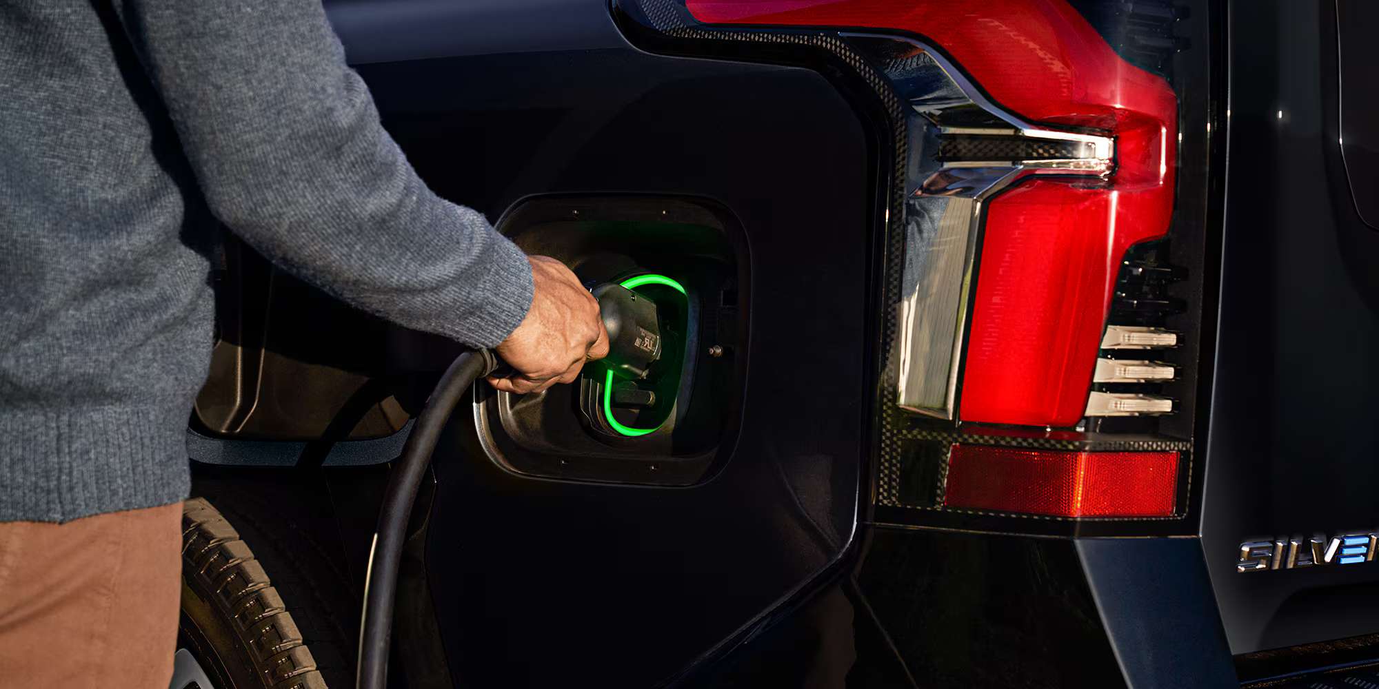 Im Gegensatz zum Ford F-150 Lightning, der bewusst wie sein Verbrenner-Bruder aussieht, geht der Silverado EV optisch einen eigenen Weg.