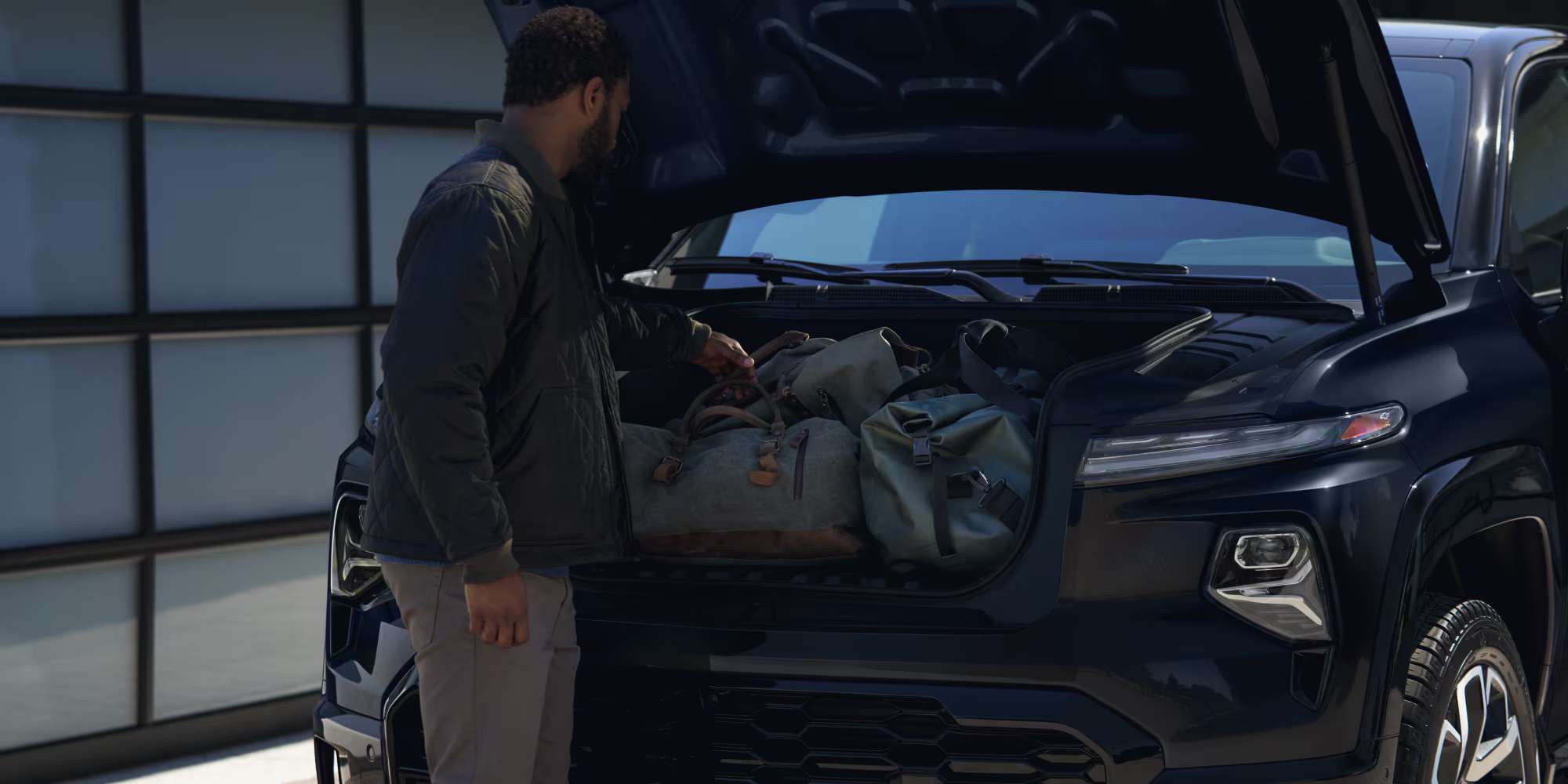 Das Design ist eine Mischung aus einem Pickup und dem Crossover-SUV Avalanche von früher. Die Karosserie und die Ladefläche (Unibody-Ansatz) sind eine Einheit, was ihm eine fließende, aerodynamische Silhouette verleiht. Die Front ist aggressiv und schmal gezeichnet und sorgt für einen hohen Wiedererkennungswert.