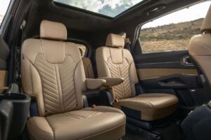 Der Sorento hat den Sprung in die Moderne geschafft. Das Infotainment ist rasend schnell, die Grafik brillant. Endlich gibt es Wireless Apple CarPlay und Android Auto auch im großen Navi. Die „Relaxation Seats“ (optional) lassen sich im Stand fast zur Liegefläche machen. Und die Bedienung? Kia hat die Multimode-Leiste (Touch-Leiste für Klima/Navi) aus dem EV6 und Sportage übernommen. Ich bleibe dabei: Ich hasse sie. Man muss hinschauen, um die Temperatur zu ändern. Echte Knöpfe wären besser gewesen. Aber es sieht verdammt schick aus. Das Platzangebot ist weiterhin gigantisch. Als 7-Sitzer ist er einer der wenigen SUVs, in denen man hinten wirklich sitzen kann, ohne Yoga-Lehrer zu sein.