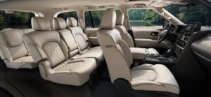 Früher sah der Armada aus wie ein aufgeblasener Wal. Das 2026er Modell (Y63) ist kantig, maskulin und verdammt breit. Die Front steht senkrecht im Wind, die LED-Leuchten sind C-förmig und riesig. Am Heck gibt es ein durchgehendes Leuchtenband, wie es Mode ist. In der Ausstattung PRO-4X (die Offroad-Variante) mit Unterfahrschutz, All-Terrain-Reifen und schwarzen Akzenten sieht er aus, als könnte er durch eine Wand fahren. In der Platinum oder Reserve Ausstattung mit 22-Zoll-Chromfelgen wirkt er wie ein amerikanischer Cadillac Escalade Konkurrent. In einer deutschen Innenstadt ist er ein Problem. Er ist über 2 Meter breit (ohne Spiegel!). Parkhäuser aus den 80ern sind Tabu-Zonen. Man braucht immer zwei Parkplätze.