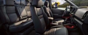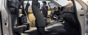Innen ist der Frontier „typisch US-Truck“. Das heißt: Alles ist groß, alles ist robust, aber nicht unbedingt „Premium“. Es gibt viel Hartplastik. Aber das ist so texturiert, dass es hochwertig wirkt. Die Schalter sind riesig – man kann sie mit Arbeitshandschuhen bedienen. Das Infotainment (bis zu 9 Zoll, je nach Baujahr und Facelift auch größer) bietet Apple CarPlay und Android Auto. Das Highlight sind auch hier die Zero Gravity Sitze. Nissan verbaut sie vorne. Selbst auf langen Strecken steigt man ohne Rückenschmerzen aus. Die Dämmung ist für einen Pickup hervorragend (Akustikglas vorne). Man hört wenig Wind, nur das angenehme Grummeln des V6. Hinten (in der Crew Cab) ist der Platz okay, aber nicht riesig. Ein Ford Ranger bietet im Fond etwas mehr Beinfreiheit. Unter der Rückbank gibt es praktische Staufächer.