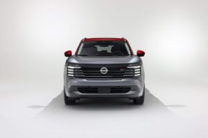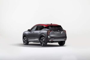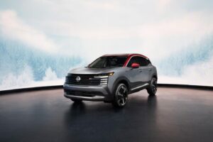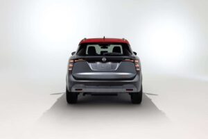 Wenn man den 2026er Kicks neben einen aktuellen Juke stellt, sieht man sofort die unterschiedlichen Philosophien. Der Juke will auffallen. Er ist coupé-artig, hat versteckte Türgriffe und wenig Fensterfläche. Der Kicks sieht aus wie ein Turnschuh auf Rädern. Die Designer haben sich tatsächlich von Sneakern inspirieren lassen. Die untere Plastikbeplankung wirkt wie eine robuste Sohle, das Dach schwebt optisch. Er ist kastenartiger, aufrechter. Das hat Vorteile: Man sieht raus! Während man im Juke beim Schulterblick oft nur C-Säule sieht, hat der Kicks große Fenster. Er wirkt weniger wie ein Bunker und mehr wie ein luftiges Glashaus. Die Front mit den horizontalen LED-Streifen wirkt breit und selbstbewusst, fast schon ein bisschen wie ein kleiner, böserer Pathfinder.