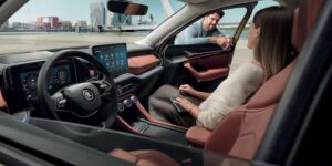 Ich setze mich hinein und möchte Skoda umarmen. Warum? Wegen drei kleiner Drehregler in der Mittelkonsole. Skoda nennt sie Smart Dials. Es sind physische Knöpfe mit kleinen Displays drin.