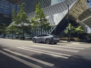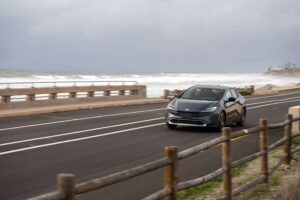 Das Fahrwerk nutzt vorne McPherson-Federbeine und hinten eine neue Doppelquerlenkerachse. Die Abstimmung ist deutlich straffer als bei früheren Prius-Generationen, ohne unkomfortabel zu sein. Die Lenkung ist präzise und direkt.